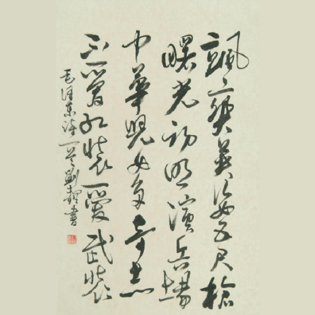 讓作品充滿書卷氣息,線條優(yōu)美瘦骨輕風(fēng),行云流水,飄逸峻拔,中疏外密,就疏壁密,小疏大密,緊中見放,收放隨心,有情感和內(nèi)涵,書法成為劉懿先生修養(yǎng)身心,復(fù)歸自然的載體。劉懿平日深居簡出,淡泊名利,襟懷坦蕩,飄逸灑脫,被書法藝術(shù)而沉醉。他曾悉心對書法美的性質(zhì)和形態(tài),書法美和現(xiàn)實(shí)美的關(guān)系,書法美與詩詞歌賦的關(guān)系,做了研究,形成了自己獨(dú)特的書法美學(xué)觀。他直言書法是一個黑白分明、美的世界,他很喜歡;書法能創(chuàng)造藝術(shù),并能通過線條抒發(fā)情感。一個黑白分明的書法美形成美的線條文化,一切都是具體的,形象的,直觀的,因此美、美感具有既朦朧又清晰,既模糊又鮮明,既可視又可見,時時處處能把握到,卻又是說不清楚的。