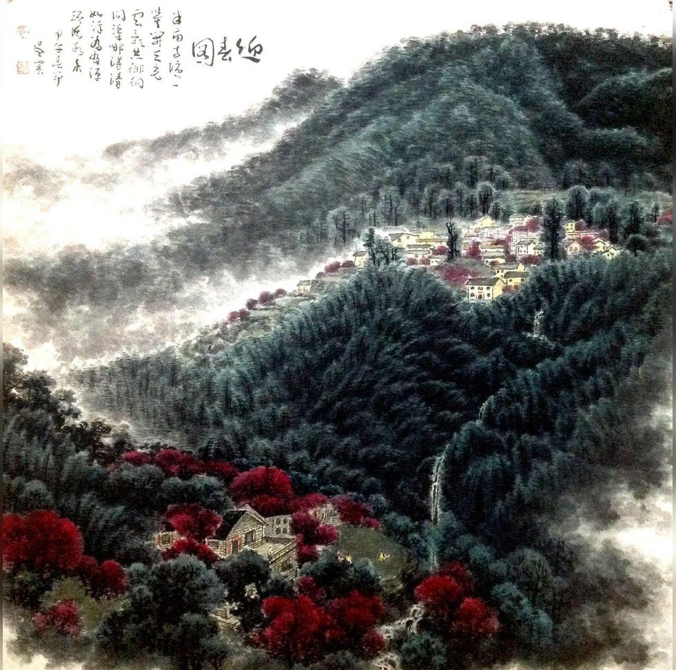 作為一種技法和語匯,積墨在水墨畫的發(fā)展及新面貌的形成上具有特殊重要性,尤其是在山水畫領(lǐng)域。墨的制造和應(yīng)用源頭久遠(yuǎn),據(jù)史書記載,在環(huán)境裝飾和畫作書寫上大量運(yùn)用,應(yīng)有制墨的工藝雛形,漢代已開始用松煙墨,但用途只限于墨色勾線;秦代尚黑,五代至兩宋時(shí)期,筆墨服從于狀物,山水畫得到空前發(fā)展,尤以南方諸家在積墨的應(yīng)用及表現(xiàn)上更加突出。董源根據(jù)江南草木華滋,地勢(shì)起伏平緩的特點(diǎn),在使用披麻皴與點(diǎn)子皴相結(jié)合中已經(jīng)更加有意識(shí)地運(yùn)用積墨表現(xiàn)的優(yōu)勢(shì),由淡 入手,層層皴積,筆墨含蓄而深沉,給人以植被繁盛,氣候潤(rùn)澤之感,米芾、米友仁父子繼承和發(fā)展。董、巨畫風(fēng)、畫技,使積墨之法得到推進(jìn)。
