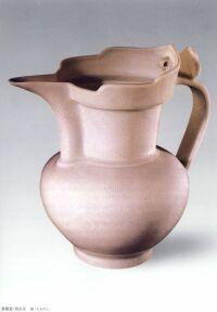 僧帽壺:中國元代創(chuàng)制的瓷器造型的壺式之一。因壺口形似僧帽而得名,造型為口沿上翹,前低后高,鴨嘴形流,壺蓋臥于口沿內(nèi),束頸、鼓腹、圈足、曲柄。具有強(qiáng)烈的少數(shù)民族風(fēng)格。元器形體敦實(shí)、壺頸較粗、壺流略短,明器壺流略長,清器頸略高,腹部略瘦。最早為元景德鎮(zhèn)青白瓷器。明清兩代繼續(xù)燒造。有青花、紅釉、白釉器等。