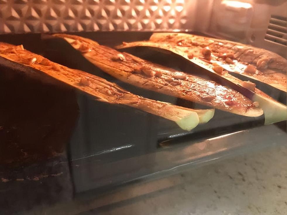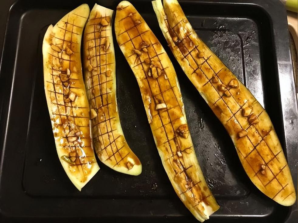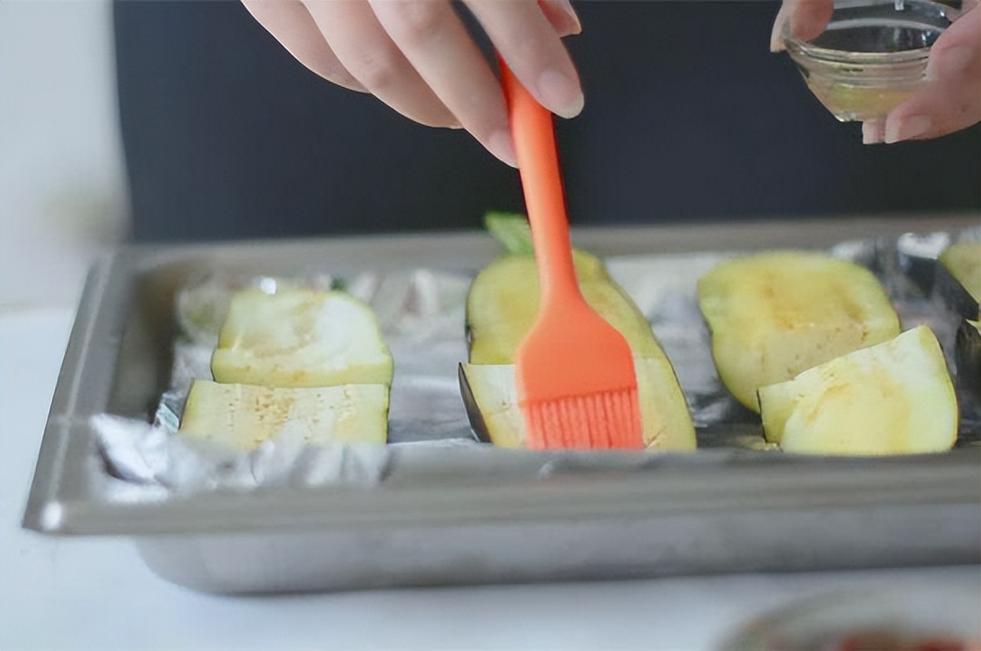茄子放入烤盤,刷上一層油