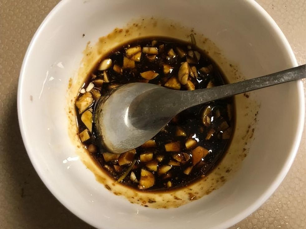所有調(diào)料除燒烤料以外加入蒜末中攪拌均勻。