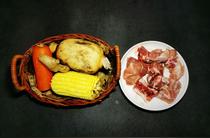 準(zhǔn)備食材:蓮藕、玉米、胡蘿卜、姜,脊骨。