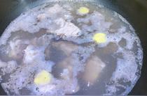 將脊骨撈出,用清水沖洗干凈脊骨表面浮沫。