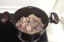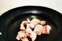 脊骨入鍋,冷水下鍋焯水。