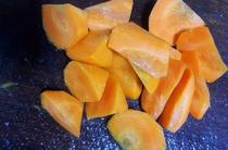 胡蘿卜洗凈削皮滾刀切塊。