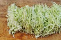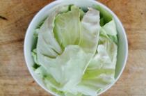 甘藍(lán)洗凈切去硬邊 ,只留最薄脆的部分。