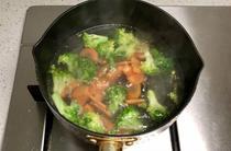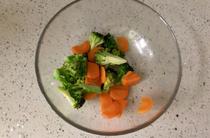 把西蘭花和胡蘿卜下沸水焯熟。