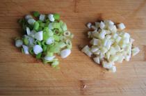 5、小蔥和大蒜切沫。