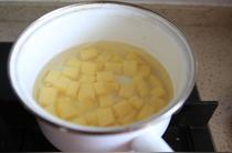 3、鍋內(nèi)入水將土豆煮熟。