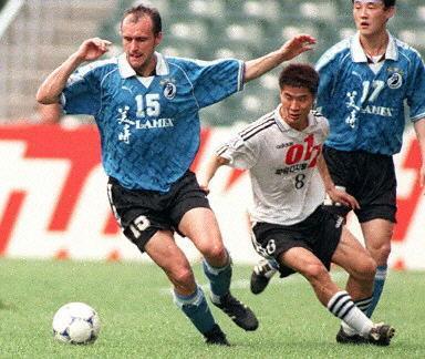 綽號"瓦瓦”,曾6次獲得捷克聯(lián)賽冠軍和3次杯賽冠軍,多次代表俱樂部參加歐洲三大杯。曾經(jīng)60次代表捷克國家隊(duì)參加國際比賽。早在1990年就代表捷克斯洛伐克隊(duì)參加了意大利世界杯,參加了全部五場比賽,最終球隊(duì)打進(jìn)八強(qiáng),1990年世界杯,內(nèi)梅切克是斯洛伐克捷克隊(duì)的絕對主力,在1/4決賽與聯(lián)邦德國隊(duì)的比賽中,內(nèi)梅切克的任務(wù)是盯防對方的頭號射手克林斯曼。此后他還代表捷克隊(duì)出戰(zhàn)了1996年的歐洲錦標(biāo)賽,并以隊(duì)長身份率隊(duì)打入了最后的決賽。1998加盟了中國的大連萬達(dá)隊(duì),幫助大連隊(duì)獲得了98年的聯(lián)賽冠軍,他在后腰位置上的傳、接、控、傳,為萬達(dá)隊(duì)的后防筑起了一道難以逾越的屏障,并為球隊(duì)奉獻(xiàn)了4個進(jìn)球。99賽季是大連隊(duì)的一個低潮期,正是由于他的協(xié)助才使大連萬達(dá)幸免降級,作為后腰,他仍然為球隊(duì)奉獻(xiàn)了2粒進(jìn)球。"瓦瓦”的中場調(diào)度能力工夫上乘,攻防意識在國內(nèi)無人能敵,被認(rèn)為是迄今為止中國足壇最出色的外援。2000年,內(nèi)梅切克離開中國。(圖為1998年大連萬達(dá)亞俱杯對陣韓國浦項(xiàng)制鐵,內(nèi)梅切克(左)、孫繼海(右)夾擊浦項(xiàng)制鐵隊(duì)崔明熙)