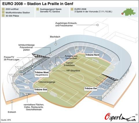 這是一座專門為歐洲杯新建的現(xiàn)代化球場。2003年4月30日,為了給新落成的球場揭幕,瑞士隊和意大利隊在這里進行了一場友誼賽,不過遺憾的是主隊最終以1:2落敗。