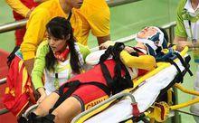 隨后各隊(duì)教練和隊(duì)友趕到賽道內(nèi),把受傷隊(duì)友扶出賽道,醫(yī)務(wù)人員在緩沖區(qū)進(jìn)行簡(jiǎn)單治療。 7位車手中韓國(guó)和印度車手的傷情并不嚴(yán)重,日本選手萩原麻由子表情很痛苦,醫(yī)務(wù)人員趕緊給她的頸部做了固定,隨即將她抬到了醫(yī)療室。香港選手習(xí)小娟也傷得比較重,頭部和胳膊都受傷,被擔(dān)架抬到救護(hù)車上,由于疼痛難耐,習(xí)小娟在救護(hù)車?yán)锸曂纯?。中?guó)選手湯科蓉受傷最嚴(yán)重,事故發(fā)生后她一直躺在場(chǎng)地內(nèi),隨后醫(yī)務(wù)人員小心翼翼地將她抬上擔(dān)架,并做好固定。5分鐘后醫(yī)院人員將她抬上救護(hù)車送往醫(yī)院,目前傷情還不得而知。