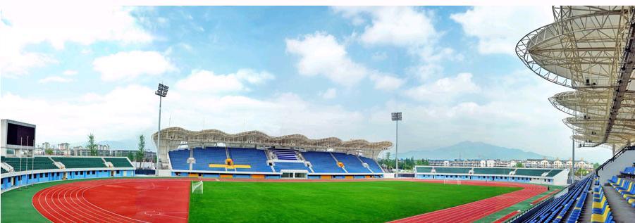 都江堰鳳凰體育場位于四川省都江堰市。體育場于2010年5月建成;占地面積130畝,可容納觀眾12700余人。