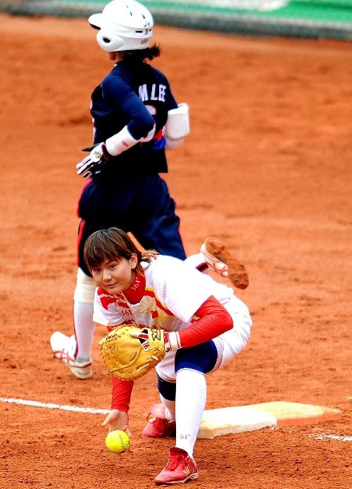 2014年8月24日,在荷蘭哈勒姆舉行的第14屆女子壘球世界錦標(biāo)賽中,韋冬梅代表中國(guó)隊(duì)對(duì)陣東道主荷蘭隊(duì)。最