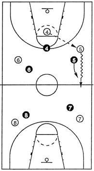 切入隊員要善于掌握時機,當(dāng)防守者只注意球或因企圖封斷傳球而失去防守位置的一剎那迅速切入。對方防守較緊時,要用假動作或動作方向、速度的變化擺脫對手,切入籃下。持球隊員要做瞄籃、突破、運球或其他進攻假動作,牽制對手。當(dāng)切入者擺脫對手并能接到球時,要及時地將球傳給他。