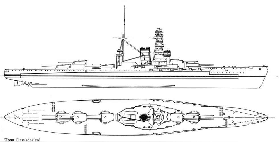 土佐號:1920年2月16日開工。1925年2月9日《華盛頓海軍條約》限制而停造,被聯(lián)合艦隊(duì)于演習(xí)時(shí)作為靶艦擊沉