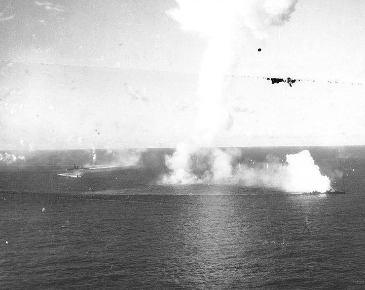 十月二十日下午六點(diǎn),小澤部隊(duì)由本土豐后水道 出擊,于二十四日到達(dá)預(yù)定的攻擊發(fā)動(dòng)點(diǎn),發(fā)動(dòng)了僅有的五十幾架戰(zhàn)機(jī)攻擊美軍艦隊(duì),期望能招致敵軍的大舉反擊。果然,十月十五日上午,美軍主力航空母艦部隊(duì)-海爾賽將軍所轄的第三艦隊(duì)發(fā)動(dòng)了共一百八十架戰(zhàn)機(jī)的大規(guī)模的空中攻擊,直往小澤艦隊(duì)殺來,在經(jīng)過激烈的戰(zhàn)斗后,小澤艦隊(duì)中的四艘航空母艦全數(shù)沉沒,但是第四航空戰(zhàn)隊(duì)的兩艘伊勢(shì)級(jí)戰(zhàn)艦卻奇跡式的得以生還,除了幾枚至近彈造成些許的損傷外,并沒有嚴(yán)重的傷害,這可能有兩點(diǎn)原因,第一,美軍以小澤艦隊(duì)中的四艘航空母艦為主要攻擊目標(biāo),第二,在最終階段的防空火力強(qiáng)化得到了良好的效果。