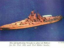 1946年,內(nèi)華達號戰(zhàn)列艦被指派前往比基尼環(huán)礁參加一場名為 "十字路"的核爆炸效應試驗的特殊行動[1]。