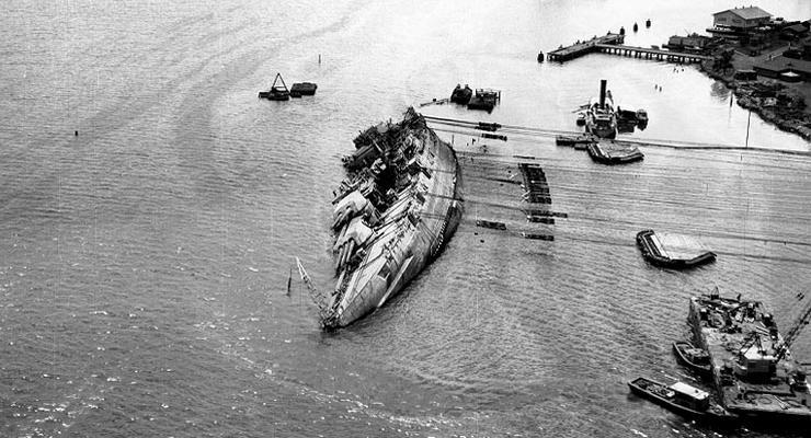 翻沉的俄克拉荷馬號戰(zhàn)列艦