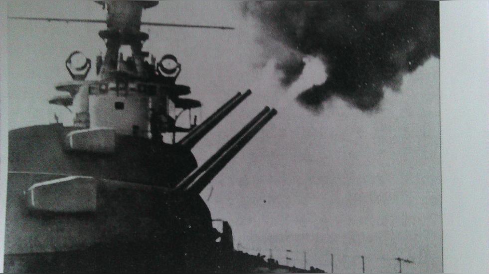 主炮性能:炮身長11.177米,身管長10.77米,纏線長9.031米。炮身全重19500千克,炮膛容積79.16升,膛壓3250千克/平方厘米。采用炮彈重:穿甲彈125.3千克;高爆彈110.7千克,發(fā)射藥包41.8千克(2個)。設(shè)計炮口初速:穿甲彈950米/秒,最大射程34208米;高爆彈930米/秒,最大射程30547米。