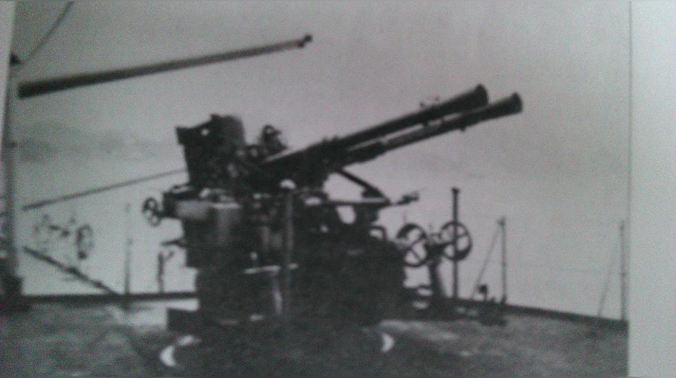本級副炮為16門奧托1927式100毫米47倍口徑高射炮,安裝在8座雙聯(lián)裝炮塔內(nèi)。炮塔左右分布,分別位于前桅、1號煙囪后部、后桅前部、2號煙囪兩側(cè)。