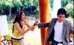 在這兒也有男主角綁架女主角到小島的情節(jié),但起因與《愛(ài)的被告》和《Sawan Bieng》大有不同。這兒男主角Techo真的是有種被女主角Morin迫瘋的感覺(jué),再加上已經(jīng)絕望了,感覺(jué)無(wú)論自己怎樣做,Morin都不會(huì)原諒自己。于是有這瘋狂的舉動(dòng)。