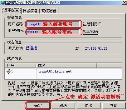 2>.啟動在第二步安裝的“科邁動態(tài)域名解析V2.03”,進(jìn)入如下界面: