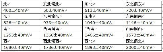 其中電壓型對應(yīng)表格如下所示:(使用時(shí)可通過查表法或直接運(yùn)算求得風(fēng)向值)