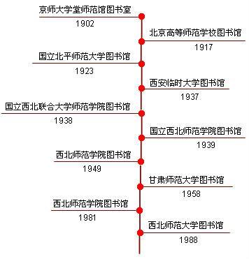 西北師范大學(xué)圖書館前身為國立北平師范大學(xué)圖書館,發(fā)端于1902年建立的京師大學(xué)堂師范館圖書室。1937年9月,圖書館隨國立北平師范大學(xué)遷西安,成立西安臨時大學(xué)。1939年,西安臨時大學(xué)更名為國立西北師范學(xué)院,該校教務(wù)處下屬機(jī)構(gòu)“圖書組”于1944年正式改名為“圖書館”。1988年,西北師范學(xué)院更名為西北師范大學(xué),圖書館隨校改稱西北師范大學(xué)圖書館。