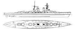 防護:舷側(cè)主裝甲帶10英寸、艏艉1.85英寸到3英寸英寸、主水平裝甲1.3英寸到3.9英寸、主炮塔正面9英寸四周6英寸、炮座11英寸到9英寸、指揮塔14英寸