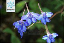 1.滇川翠雀花,多年生草本。莖高60-100cm,密被反曲短糙毛。莖下部葉具長柄;葉柄長于葉片2-3倍,基部有鞘;葉片五角形,長4.5-6cm,寬7.5-11cm,3深裂,中央深裂片菱形, 3淺裂,淺裂片有缺刻狀小裂片和牙齒,側(cè)深裂片斜扇形,不等2深裂,兩面被糙伏毛??偁罨ㄐ颡M長,有多花;苞片葉狀或線狀披針形,密被糙毛;軸和花梗密被白色短糙毛和黃色短腺毛;花梗長1.2-3.5cm;小苞片生花梗頂端或花下2-6mm處,狹披針形,長5-10mm;花兩性,兩側(cè)對稱;萼片5,寬橢圓形,。長1-1.2cm,藍(lán)紫色,外面有短柔毛,距長1.6-2.1cm,末端稍向下彎;花瓣2或黃色髯毛;雄蕊多數(shù),無毛;心皮3,密被柔毛。蓇葖果長1.6-2.4cm。種子倒卵球形,長約2mm,密生鱗狀橫翅?;ㄆ?-11月,果期8-12月。