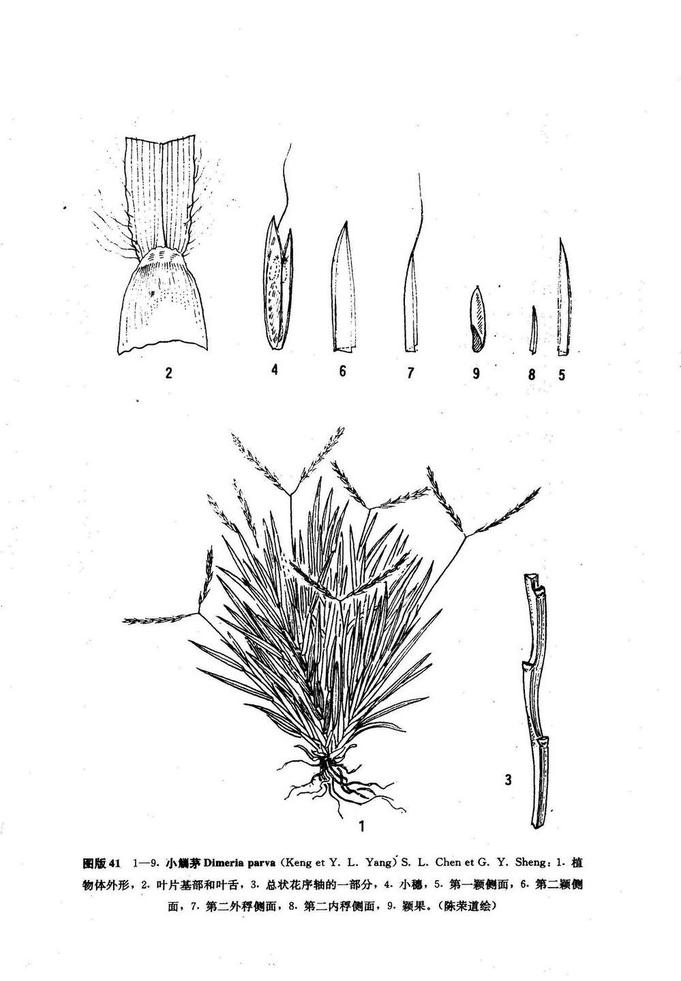 由于植株矮小,叢生,高僅5-11厘米,多分枝,節(jié)間短,節(jié)幾無毛;總狀花序梗短裸露,花序分叉角度大于90°,小穗長3-3.5毫米,二穎先端長漸尖,第二穎背具脊呈翼狀,第二外稃背脈延伸的芒不露出小穗或僅露出1-2毫米等特征與(xī)觿茅Dimeria?ornithopoda?Trin.?明顯有別。[2]