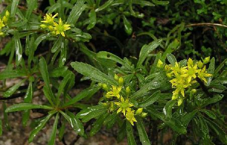 多年生草本,高20~50cm。葉片廣卵形至狹倒披針形。聚傘花序頂生,分枝平展,花密生,黃色,花期6~9月。蓇葖果五角星狀,果期8~9月。