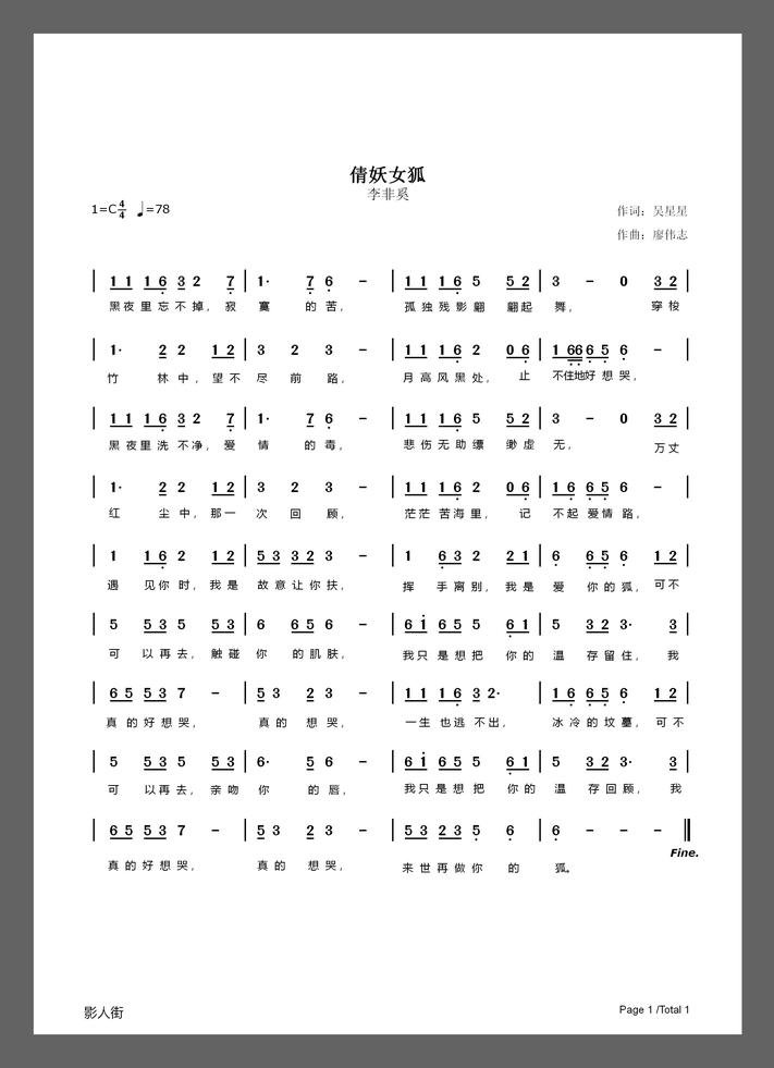 倩妖女狐簡譜