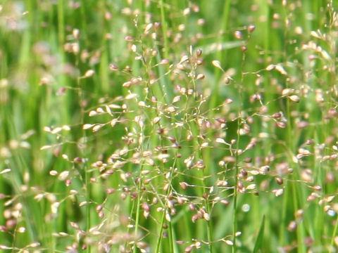 多年生。具短根狀莖,須根粗韌。稈叢生,質(zhì)地較堅硬,直立或基部傾斜,高30-50厘米,具多節(jié),節(jié)間短,節(jié)上具細茸毛。葉鞘長于節(jié)間,基部呈跨覆狀排列,無毛或僅上半部疏生細柔毛,邊緣及鞘口具纖毛;葉舌纖毛狀,長約2毫米;葉片披針形,長4-9厘米,寬0.5-1厘米,頂端漸尖,基部最寬,略呈心形,兩面被細毛,背面較密,稍粗糙,邊緣軟骨質(zhì),常具微細的小刺毛。圓錐花序開展,長8-20厘米,每節(jié)具1-4個分枝,互生或近輪生狀,分枝及小穗柄無毛,但有腺斑,常作蛇形彎曲,下部裸露,上部疏生小穗,小穗柄長為小穗的2至數(shù)倍;小穗綠色或帶紫色,倒卵形或近球形,長約2毫米;穎寬闊,第一穎較第二穎略短,頂端截平狀或微凹,通常具16脈,稀8或12脈,邊緣近膜質(zhì),上半部疏生短毛或無毛;兩小花同質(zhì)同形,均為兩性花;內(nèi)外稃均被細毛,軟骨質(zhì);雄蕊3枚,花藥長1-2毫米。穎果近球形?;ü?-10月。