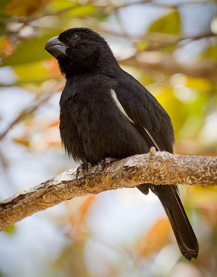 古巴黑雀屬只有一種鳥(niǎo)即古巴黑雀,屬小型鳴禽。一般主食植物種子。喙為圓錐形,與雀科的鳥(niǎo)類(lèi)相比較為細(xì)弱,上下喙邊緣不緊密切合而微向內(nèi)彎,因而切合線中略有縫隙;喜歡灌叢和森林地區(qū),發(fā)現(xiàn)于中度海拔,一般在海平面和低海拔地區(qū)最常見(jiàn)。雄鳥(niǎo)主要是深黑色的羽毛,翼角有白色斑羽,在休息和飛行中與整體黑色羽毛形成鮮明對(duì)比;而雌鳥(niǎo)和幼鳥(niǎo)較灰暗,更多的呈木炭黑色(少光澤),翼角也擁有一個(gè)更小的白色斑。有2個(gè)亞種,非繁殖期常集小群活動(dòng),以植物,果實(shí),種子,昆蟲(chóng)為食物,繁殖季節(jié)從3月持續(xù)至8月,構(gòu)造一個(gè)大的球狀巢,每巢產(chǎn)3至5枚卵。