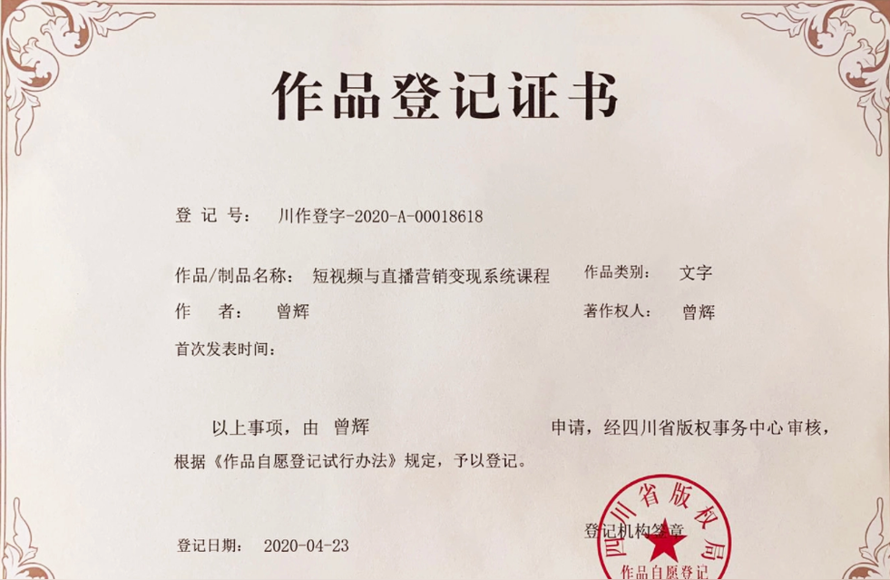 作品/制品名稱:短視頻直播營(yíng)銷變現(xiàn)系統(tǒng)課程