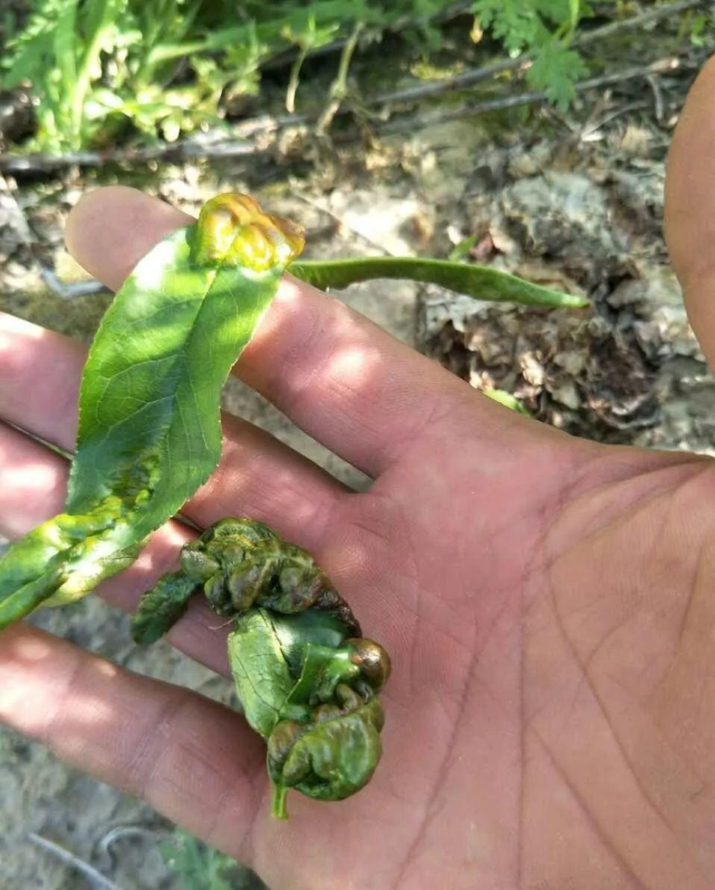 若發(fā)生嚴重的桃樹縮葉病時,這時會造成葉子不能有效進行光合作用,營養(yǎng)供給不能滿足果實的發(fā)育需求,因此應在放棄果實、堅持保樹的前提下采取緊急補救措施,即:對皺縮嚴重的病葉先全部進行摘除,帶出地外進行焚燒,然后對皺縮不嚴重的病葉和好葉進行噴藥防其擴展。藥品選用藥肥合劑-果寶800-1000倍液加葉面肥磷酸二氫鉀或鋅加硒,每隔7-10天噴一次,噴2-3次即可控制住。
