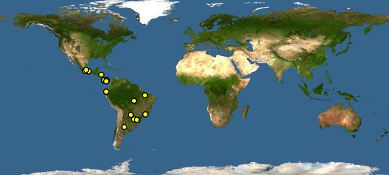 分布于阿根廷,巴西,伯利茲,哥倫比亞,哥斯達(dá)黎加,厄瓜多爾,薩爾瓦多,洪都拉斯,墨西哥,尼加拉瓜,巴拿馬,秘魯,委內(nèi)瑞拉。