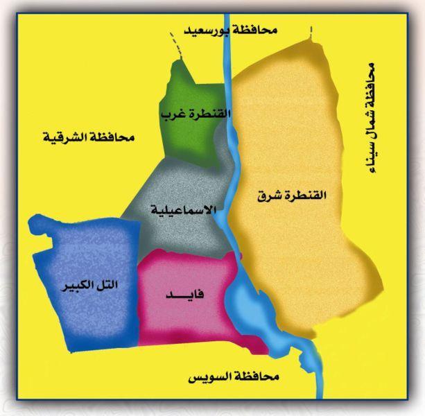 右圖為伊斯梅利亞省五區(qū),伊斯梅利亞市為中間灰色示意。