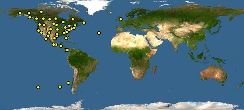 分布于巴哈馬,百慕大,加拿大,墨西哥,圣皮埃爾和密克隆群島,特克斯和凱科斯群島,美國(guó),多米尼加共和國(guó),挪威,英國(guó),伯利茲,開(kāi)曼群島,哥斯達(dá)黎加,古巴,薩爾瓦多,危地馬拉,海地,洪都拉斯,波多黎各,格陵蘭島,牙買(mǎi)加,巴拿馬。