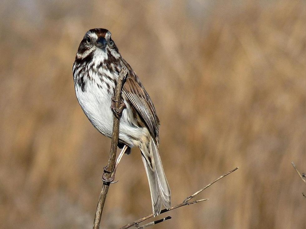 歌帶鹀屬是一類中型鳴禽,外觀和麻雀很相似,長(zhǎng)長(zhǎng)的尾巴在棲息時(shí)舉到適當(dāng)?shù)母叨取?/p>