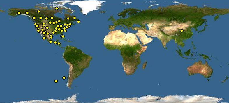 樹雀鹀屬分布圖