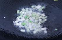 鍋內(nèi)熱油放小蔥和洗干凈的海米炒香