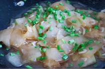 冬瓜削皮之后切塊,小蔥打結(jié)