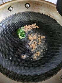 2.鍋中燒熱油,煸炒海米出香味