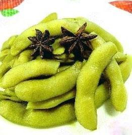 鹽水毛豆是上海市的傳統(tǒng)小吃,屬于滬菜系。此菜清香鮮嫩,佐酒最美。是中秋節(jié)必不可少的美味。先將毛豆洗凈,瀝去水汾,挑選飽滿個大的,用剪刀去兩端的尖角。將剪好的毛豆放入鍋中,放花椒和精鹽,加清水至與毛豆平,用旺火加蓋煮20分鐘后撈出,裝盤。[1]