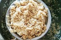 看芝麻干凈不?有雜質(zhì)的先洗下,瀝干水分后倒出晾干水分。我的很干凈,這步就省略了。