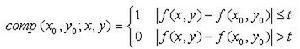 USAN區(qū)域面積通過圓模板內(nèi)各像素與中心點像素比較得到的相似點的個數(shù)總和來表示,該相似比較函