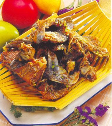 3. 魚鱗不去,炸時(shí)油溫要高,并炸焦熟。
